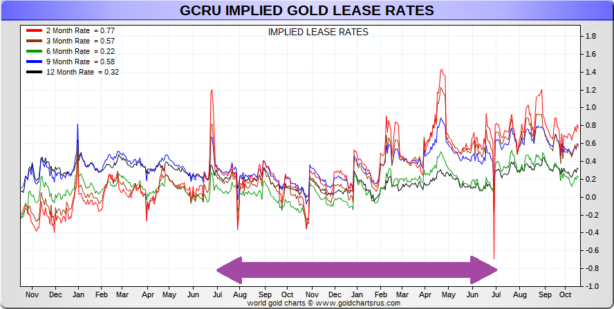 To put that rate in perspective, Nick Laird from Gold Charts 'R' Us helps out with this dervied lease rate chart, which provides more recent figures than the chart in my previous post.